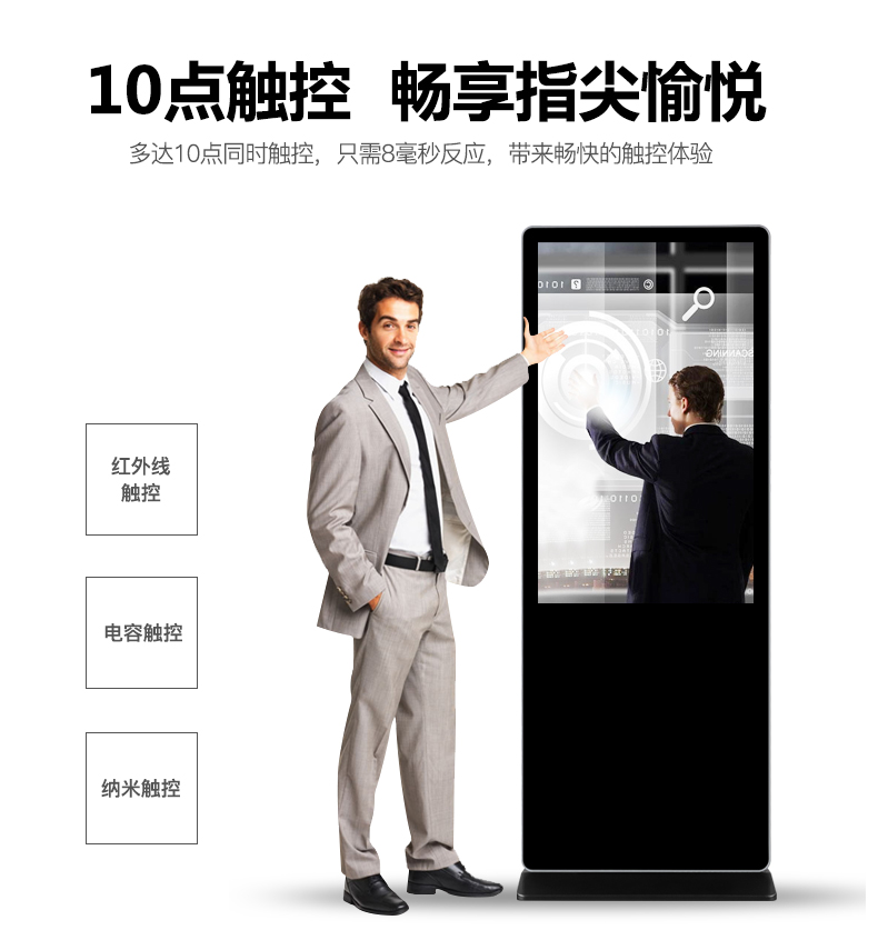 然而,目前市面上也涌現(xiàn)了非常多的液晶廣告機(jī)生產(chǎn)廠家,雖然各廠家的技術(shù)都差不多,最終拼的就是研發(fā)實(shí)力及售后響應(yīng)速度,這樣液晶廣告機(jī)生產(chǎn)廠家才能給客戶帶來價(jià)值,為自己創(chuàng)造出更大的優(yōu)越感。能夠?qū)崿F(xiàn)觸摸的產(chǎn)品,比播放式數(shù)字標(biāo)牌更能吸引消費(fèi)者的主動(dòng)參與。在未來數(shù)字標(biāo)牌的發(fā)展中,虛擬現(xiàn)實(shí)已成為數(shù)字標(biāo)牌新的發(fā)展趨勢(shì),在行業(yè)的競(jìng)爭(zhēng)中,能夠?qū)崿F(xiàn)與客戶的更多的信息交互將是提高競(jìng)爭(zhēng)力的有力因素,在這種競(jìng)爭(zhēng)中,觸摸液晶廣告機(jī)體感將作為過渡將給客戶一個(gè)全新的體驗(yàn)。