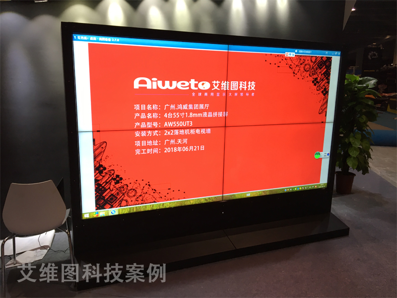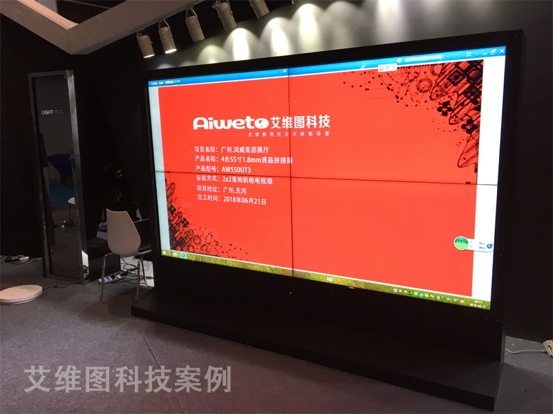 根據(jù)廣州鴻威會展集團的客戶需求, 本來按效果來說應該安裝液壓前維護支架式,但是由于需要做觸摸拼接屏,只能定制落地式機柜才能安裝,此套艾維圖科技提供的55寸超窄邊觸摸液晶拼接系統(tǒng)為廣州鴻威會展集團的所有工作人員促進了工作效率,從節(jié)能、顯示方式、超高的清晰度等眾多優(yōu)勢,無一不彰顯出觸摸拼接屏的獨特魅力。