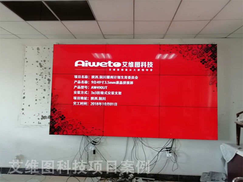 陜西銅川耀州計(jì)劃生育委員會安裝的艾維圖55寸3.5mm超窄邊液晶拼接屏案例,我們的工程師根據(jù)現(xiàn)場的環(huán)境布局,設(shè)計(jì)了一套3*3液晶拼接屏方案,擁有超高亮度和色彩一致性效果較好,本身就可被看作是充滿時尚科技元素的建筑裝飾,成為銅川耀州計(jì)劃生育委員會提升檔次的宣傳工具。這次拍的液晶拼接墻圖片非常的給力,讓群眾通過液晶拼接大屏能快速的了解計(jì)劃生育信息,及具體規(guī)劃。