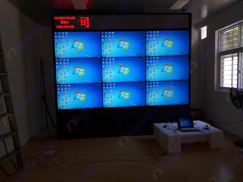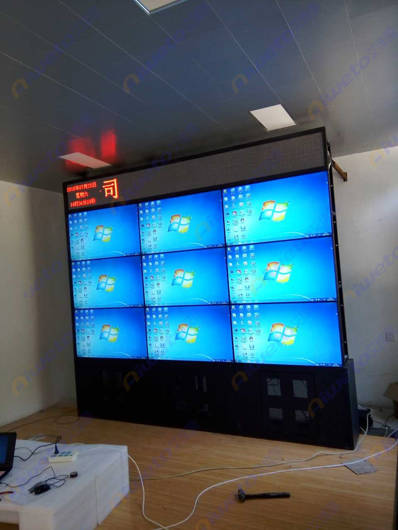通過對客戶使用需求和部署環(huán)境的認(rèn)真研究和考察,Aiweto(艾維圖)科技工程師給出了多套相關(guān)解決方案,最終選用了由9臺(Aiweto) 46寸液晶拼接單元組成的3×3大屏幕液晶拼接墻。(Aiweto) 46寸液晶拼接單元是艾維圖科技推出的一款超窄邊液晶拼接顯示器,采用工業(yè)級面板,采用先進(jìn)的集成處理芯片,性能穩(wěn)定,運動圖像補(bǔ)償?shù)泉氂械南冗M(jìn)技術(shù),有效的保證了輸出圖像的效果,支持7×24小時開機(jī),拼接邊縫小,適合大屏液晶拼接項目應(yīng)用。