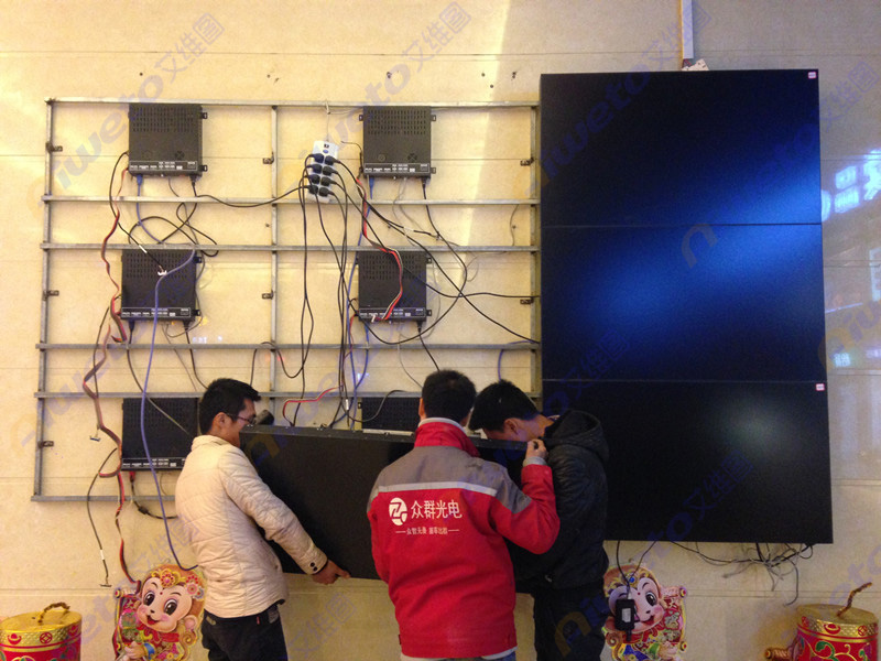 通過對客戶使用需求和部署環(huán)境的認(rèn)真研究和考察,Aiweto(艾維圖)科技工程師給出了多套相關(guān)解決方案,最終選用了由9臺(Aiweto) 46寸液晶拼接單元組成的3×3大屏幕液晶拼接墻。(Aiweto) 46寸液晶拼接單元是艾維圖科技推出的一款超窄邊液晶拼接顯示器,采用工業(yè)級面板,采用先進(jìn)的集成處理芯片,性能穩(wěn)定,運(yùn)動圖像補(bǔ)償?shù)泉氂械南冗M(jìn)技術(shù),有效的保證了輸出圖像的效果,支持7×24小時開機(jī),拼接邊縫小,適合大屏液晶拼接項目應(yīng)用。