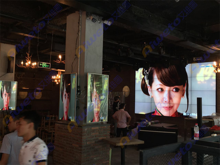 在各種餐廳內(nèi),“4K高清版”液晶拼接屏可實(shí)現(xiàn)分屏播放,在唱歌的同時(shí)大屏顯示系統(tǒng)會(huì)根據(jù)消費(fèi)者唱的歌曲智能推薦,實(shí)現(xiàn)智能一體化應(yīng)用,同時(shí)還可進(jìn)行智能化的交互應(yīng)用、舞蹈躍動(dòng)、游戲互動(dòng),讓唱歌以外的人加入其中,使之氛圍充滿青春活力的氣息,真正提高在KTV的休閑娛樂,放松心情。