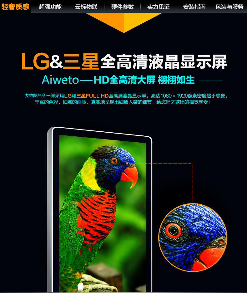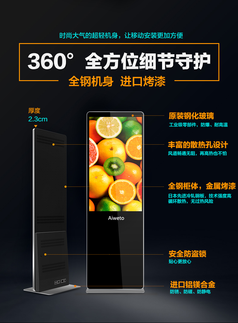 AW-CM550L01 立式觸摸一體機(jī)采用全高清(1920*1080)液晶面板,具有178度視角,高對比度和亮度,3D數(shù)字降噪,智能消除殘影、重影等失真現(xiàn)象,使得顯示畫面更清晰,穩(wěn)定,色彩更鮮艷??蓮V泛運(yùn)用于快餐店、訂票處、學(xué)校、機(jī)場、酒店大堂、交易所、電影院、企業(yè)、會(huì)展展館、商場等場所。