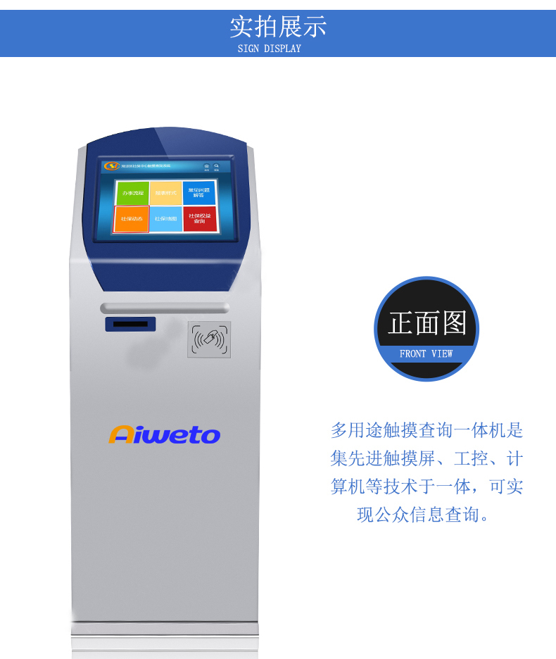 觸摸屏查詢一體機(jī)是一款智能觸摸查詢?cè)O(shè)備。它集觸控、液晶顯示、電腦主機(jī)于一體,可用于觸控互動(dòng)、查詢信息多媒體教學(xué)等。觸摸一體機(jī)主體由流暢的直線構(gòu)成,簡(jiǎn)約,時(shí)尚,符合現(xiàn)代社會(huì)流行趨勢(shì)。整體造型設(shè)計(jì)利于人體機(jī)學(xué)設(shè)計(jì),使用戶擁有更舒適、更便捷、 更貼心的視覺觸覺雙重體驗(yàn)。