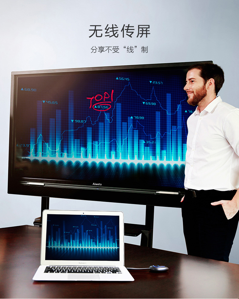 Aiweto(艾維圖)會議多媒體觸摸一體機采用LG商用IPS硬屏,全高(1920*1080)顯示,具有178度視角,高對比度和亮度,3D數字降噪,智能消除殘影、重影等失真現(xiàn)象,使得顯示畫面更清晰,穩(wěn)定,色彩更鮮艷;